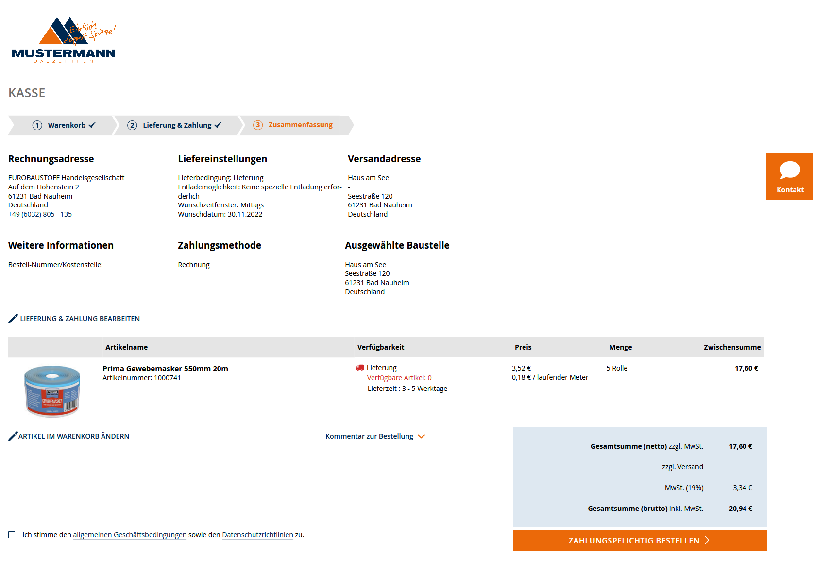 - Kaufen Sie diesen Artikel nun für eine Baustelle, bei der nochmals Sonderkonditionen vereinbart wurden, so ist dies analog zu dem Checkout im Onlineshop, in welchem Sie Ihre Baustelle auswählen können.